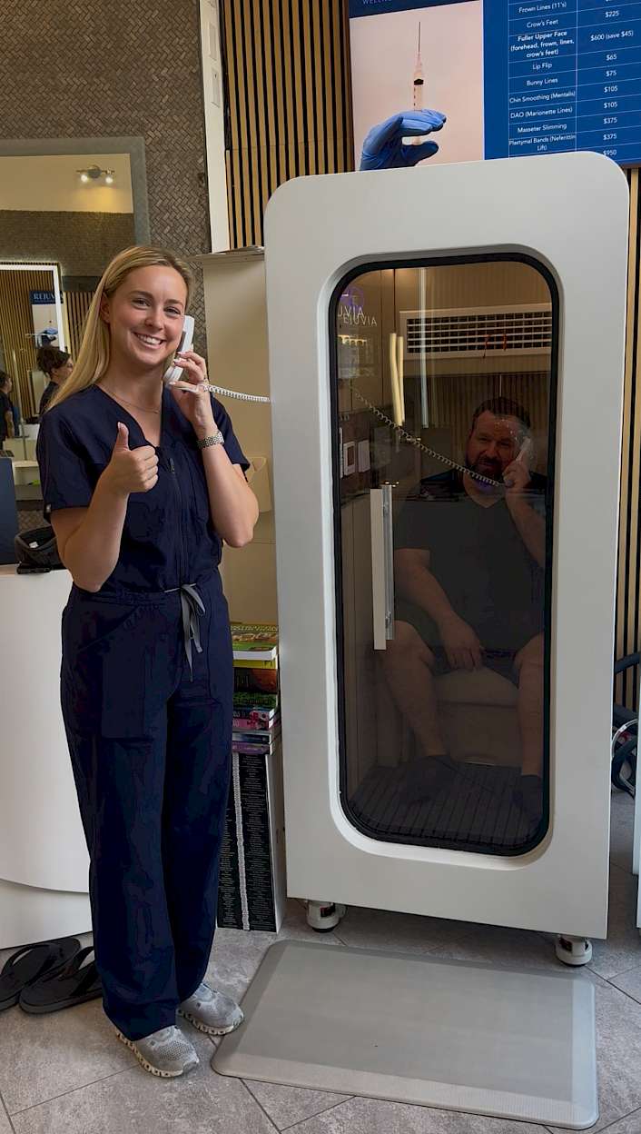 Sessions last 60 minutes and are supervised by our trained team. You’ll sit comfortably inside the air conditioned chamber as it gently pressurizes and begins delivering oxygen therapy. Most clients emerge feeling refreshed, lighter, and deeply restored. Please note - electronic devices are not permitted inside of the chamber. Please bring printed reading material to enjoy during your session.